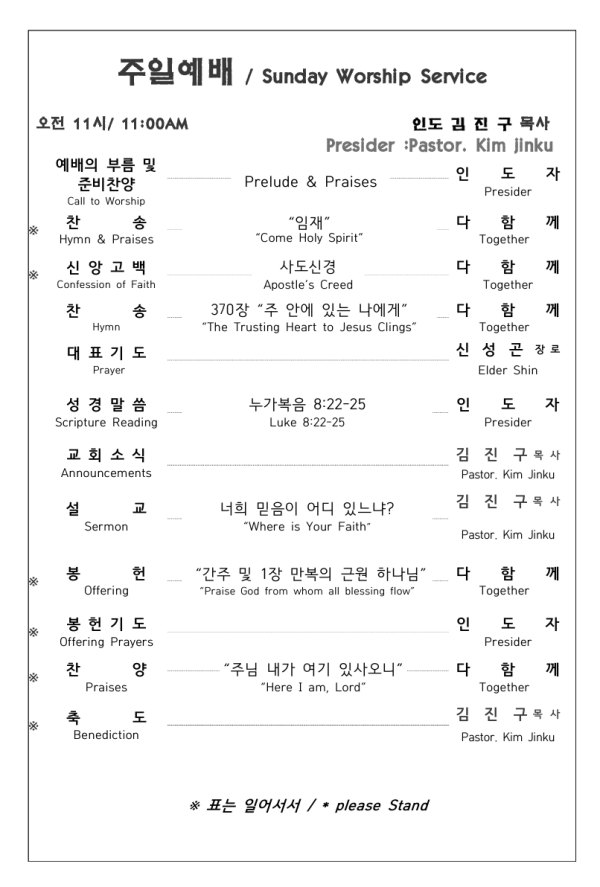 2025. 6. 1 주일예배 영상 및 주보