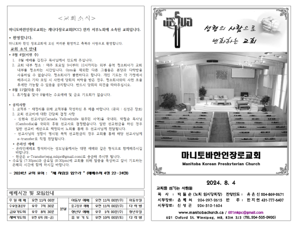 마니토바한인장로교회 웹사이트에 방문해 주셔서 감사합니다.