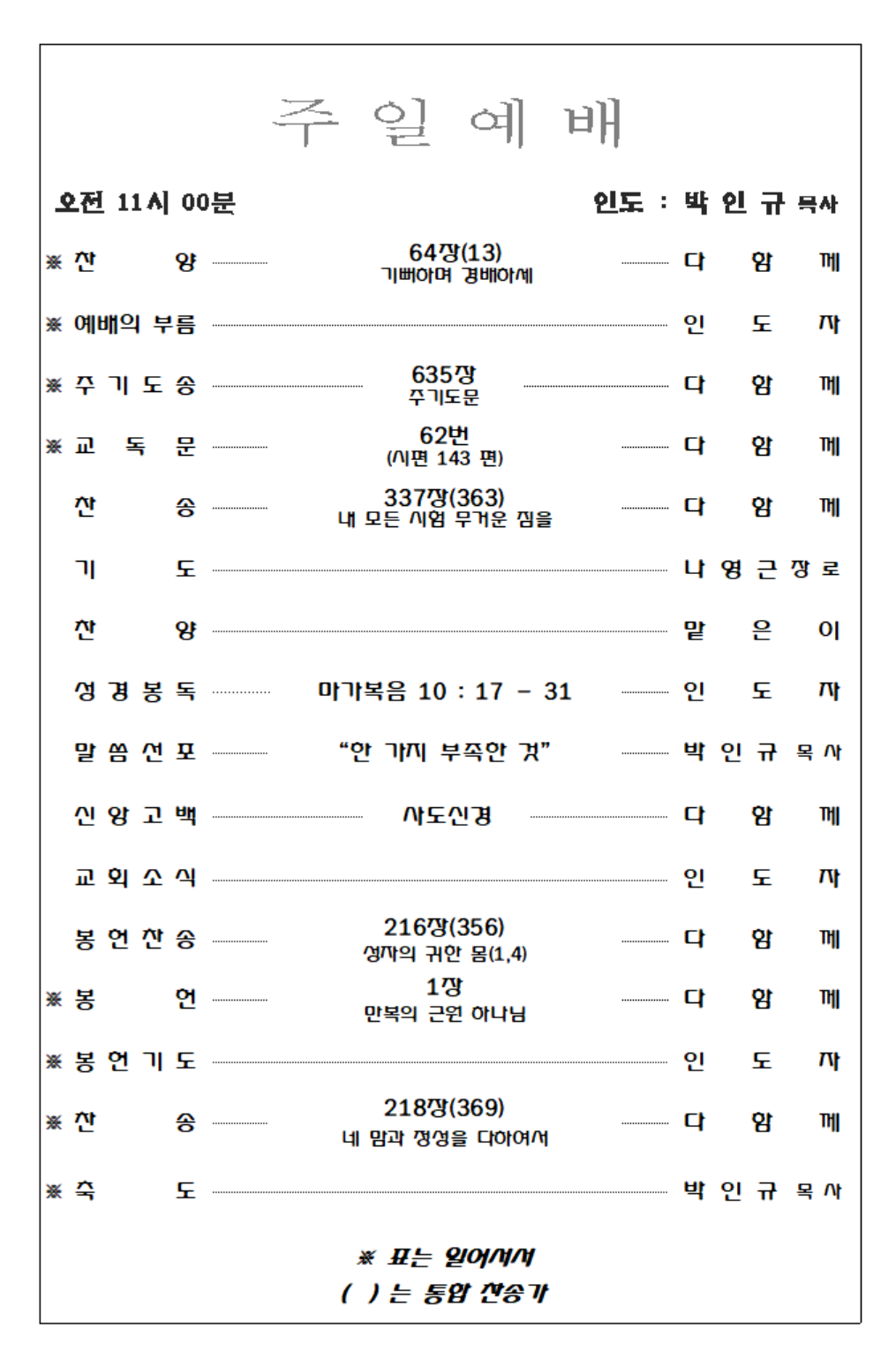 2025. 10. 19 주일예배 영상 및 주보