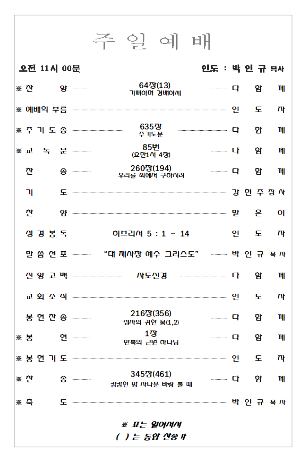 2025. 11. 16 주일예배 영상 및 주보