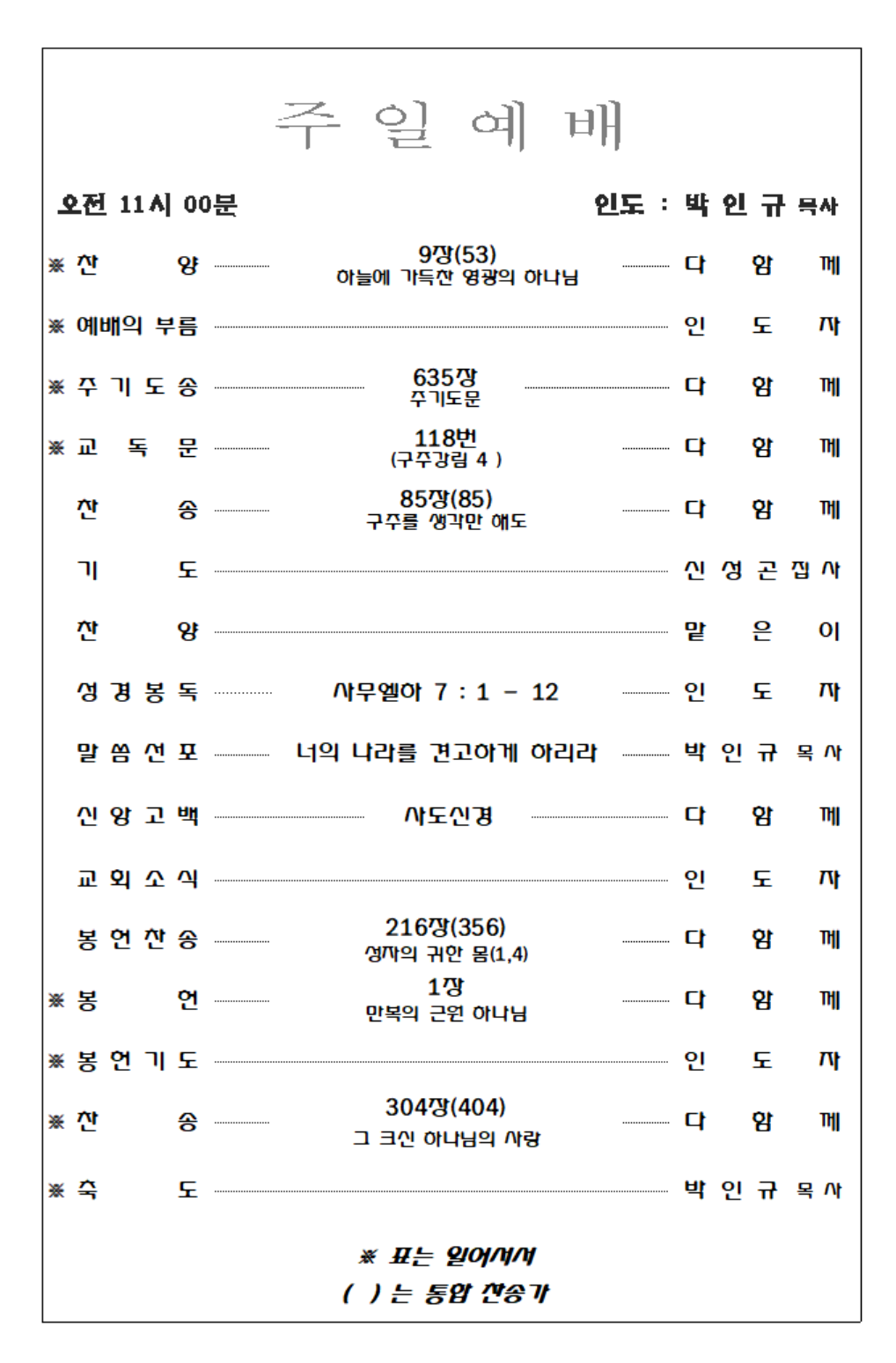 2025. 11. 09 주일예배 영상 및 주보