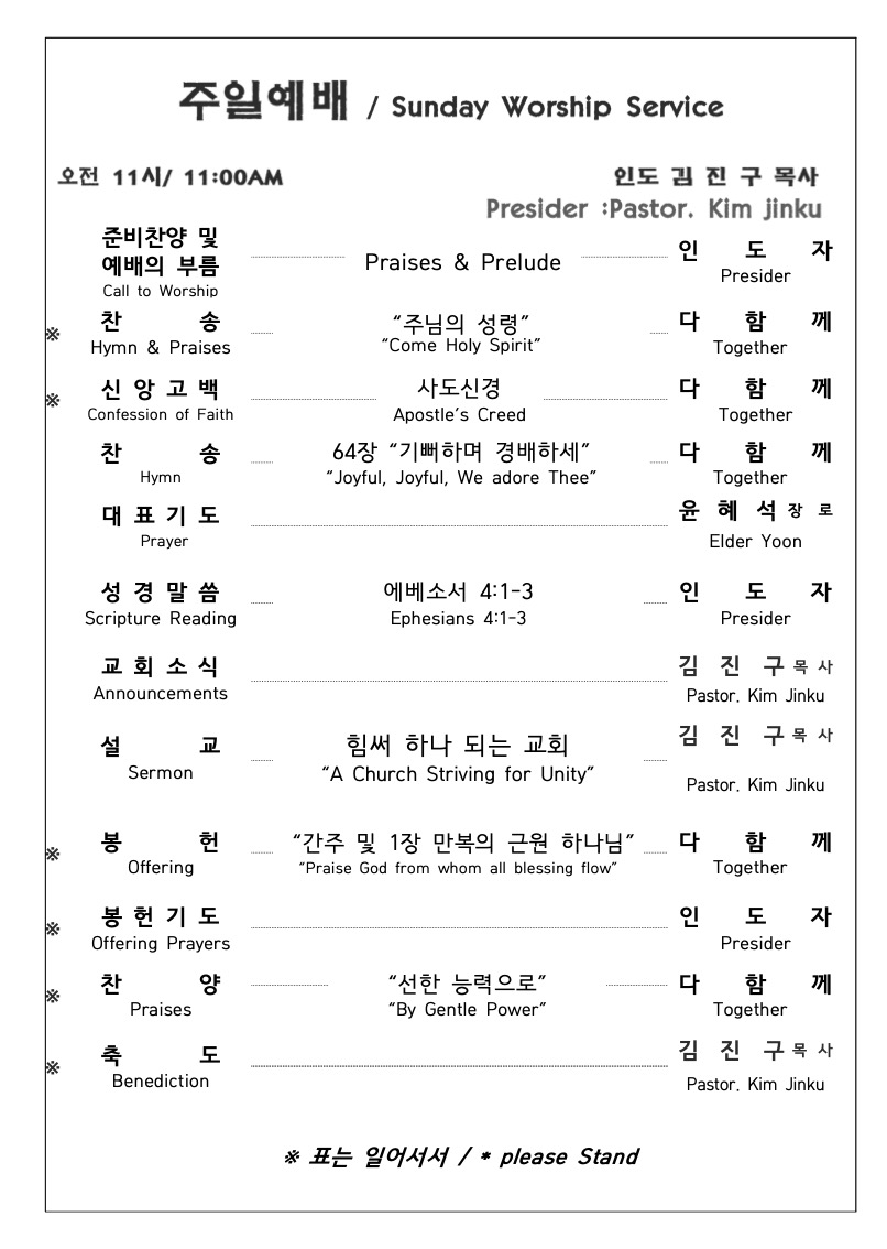 2025. 9. 14 주일예배 영상 및 주보