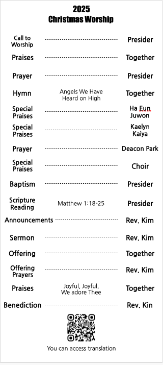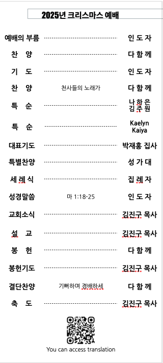2025. 12. 25 크리스마스 예배 영상 및 주보