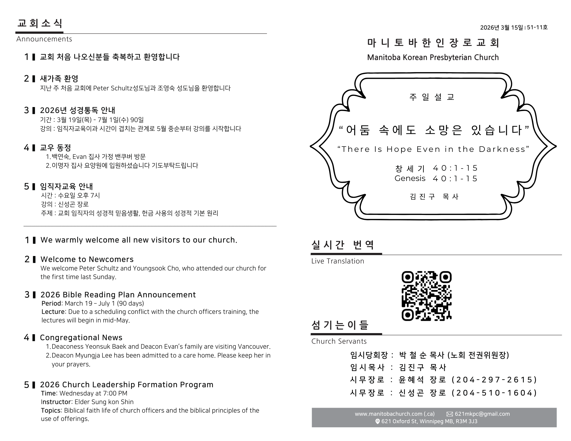 마니토바한인장로교회 웹사이트에 방문해 주셔서 감사합니다.
