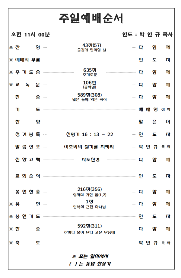 2023. 10. 8 주일예배 영상 및 주보