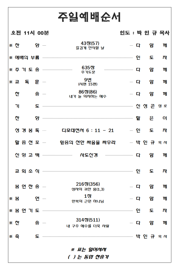 2023. 10. 15 주일예배 영상 및 주보