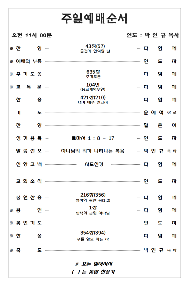 2023. 10. 29 주일예배 영상 및 주보