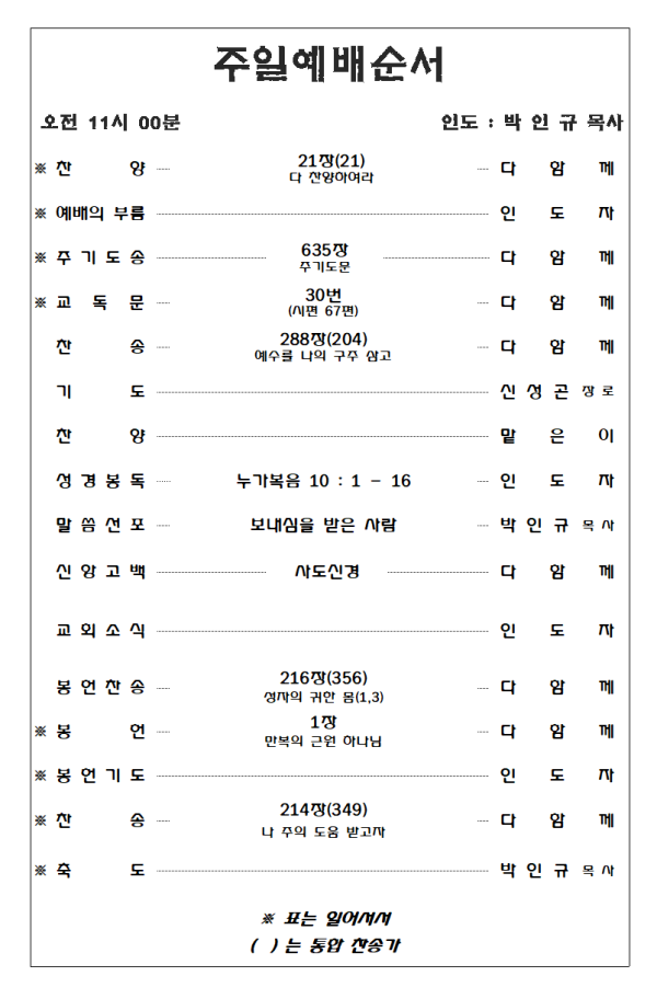 2026. 3. 15 주일예배 영상 및 주보