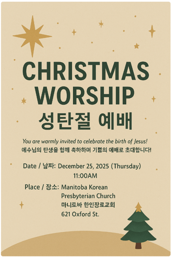 마니토바한인장로교회 웹사이트에 방문해 주셔서 감사합니다.