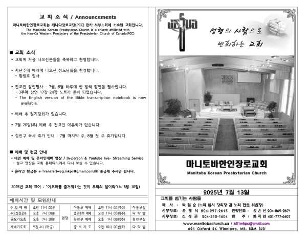 마니토바한인장로교회 웹사이트에 방문해 주셔서 감사합니다.
