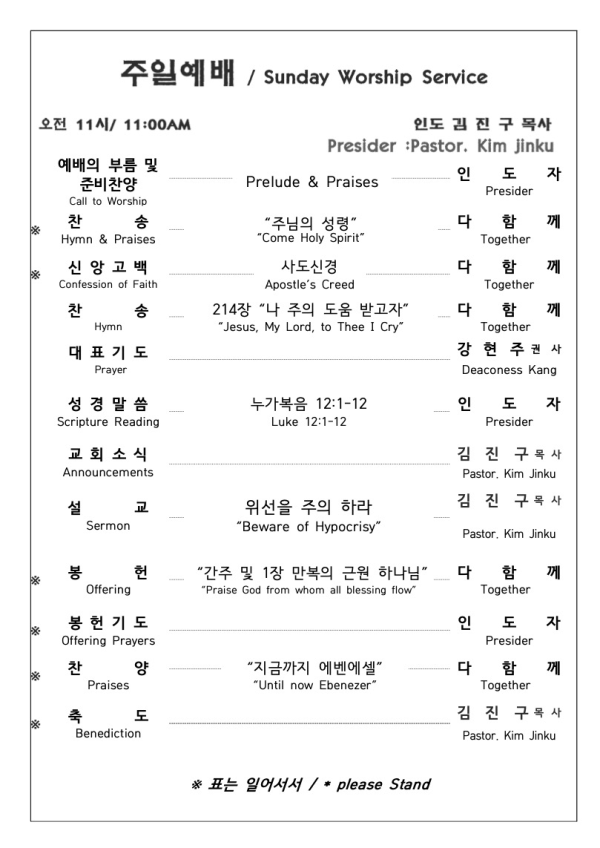 2025. 8. 31 주일예배 영상 및 주보