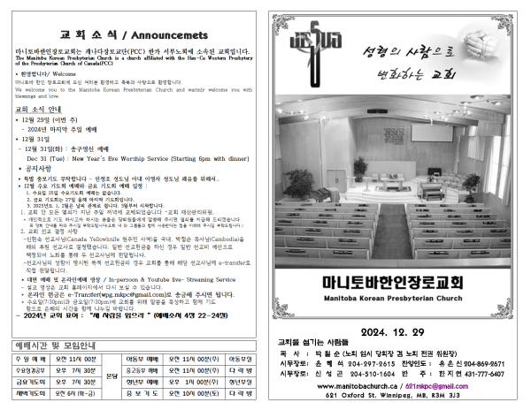 마니토바한인장로교회 웹사이트에 방문해 주셔서 감사합니다.