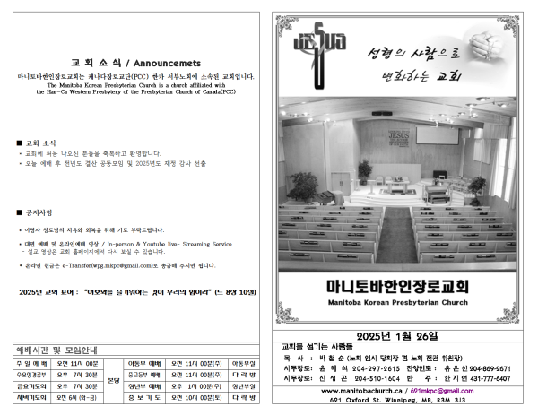 마니토바한인장로교회 웹사이트에 방문해 주셔서 감사합니다.