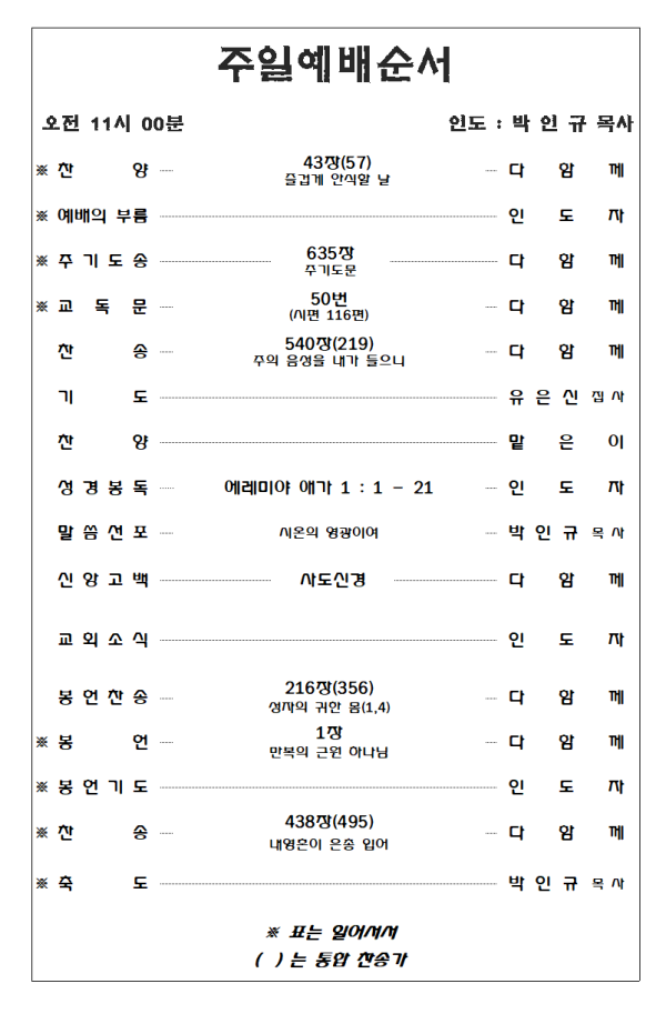 2023. 10. 22 주일예배 영상 및 주보