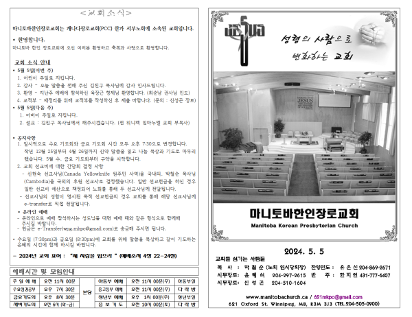 마니토바한인장로교회 웹사이트에 방문해 주셔서 감사합니다.