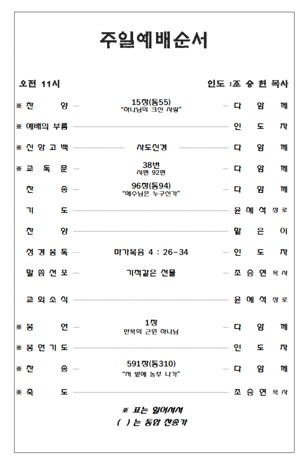 2026. 3. 15 주일예배 영상 및 주보