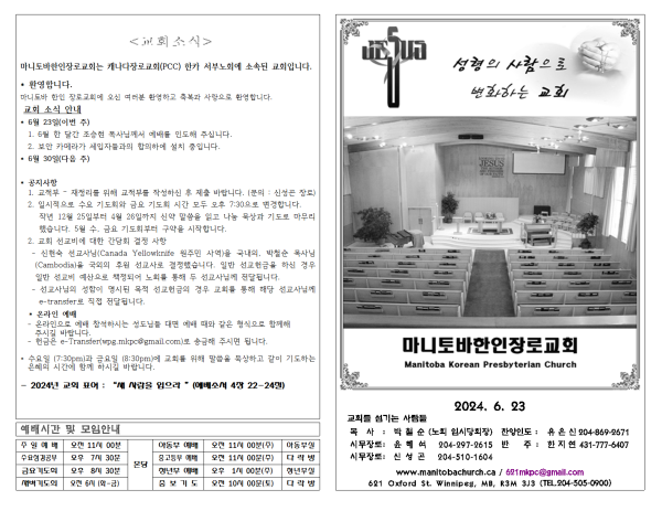 마니토바한인장로교회 웹사이트에 방문해 주셔서 감사합니다.