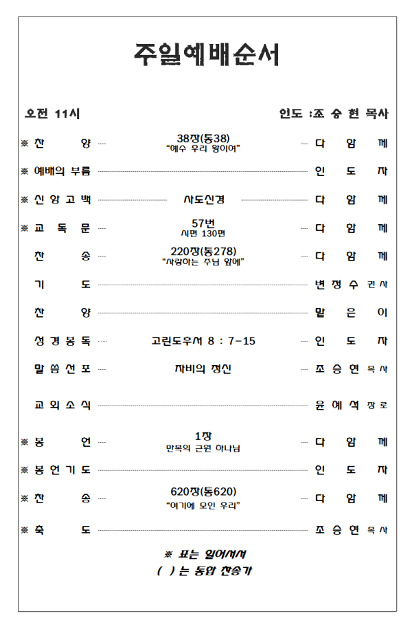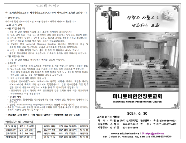 마니토바한인장로교회 웹사이트에 방문해 주셔서 감사합니다.
