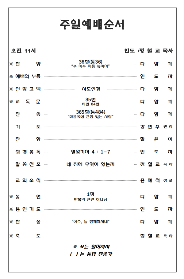 2026. 3. 15 주일예배 영상 및 주보