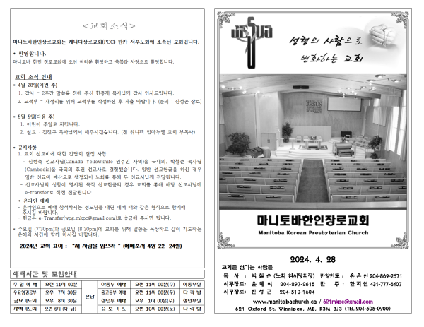 마니토바한인장로교회 웹사이트에 방문해 주셔서 감사합니다.