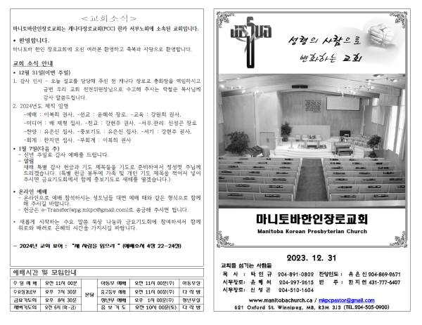 마니토바한인장로교회 웹사이트에 방문해 주셔서 감사합니다.