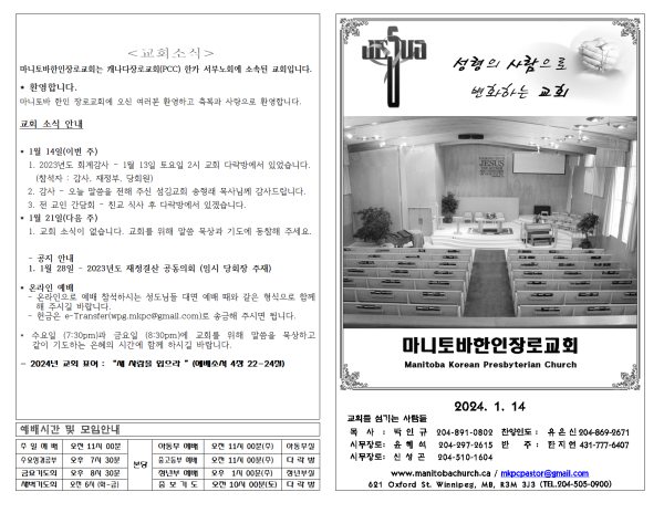 마니토바한인장로교회 웹사이트에 방문해 주셔서 감사합니다.