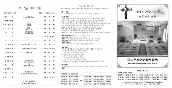 2019.11.17. 주보입니다.
