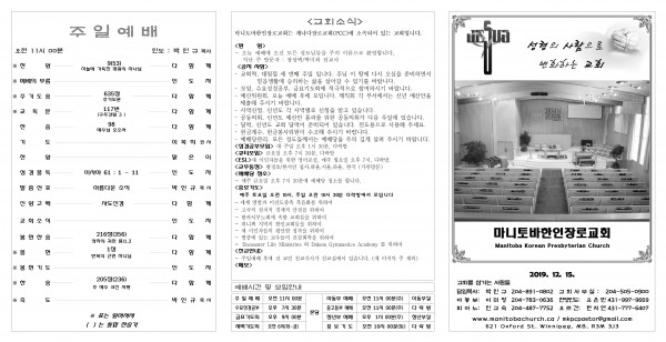 마니토바한인장로교회 웹사이트에 방문해 주셔서 감사합니다.