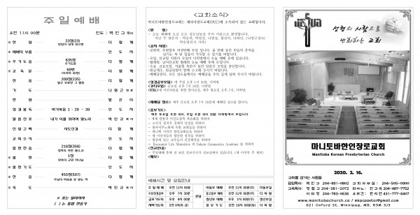 마니토바한인장로교회 웹사이트에 방문해 주셔서 감사합니다.