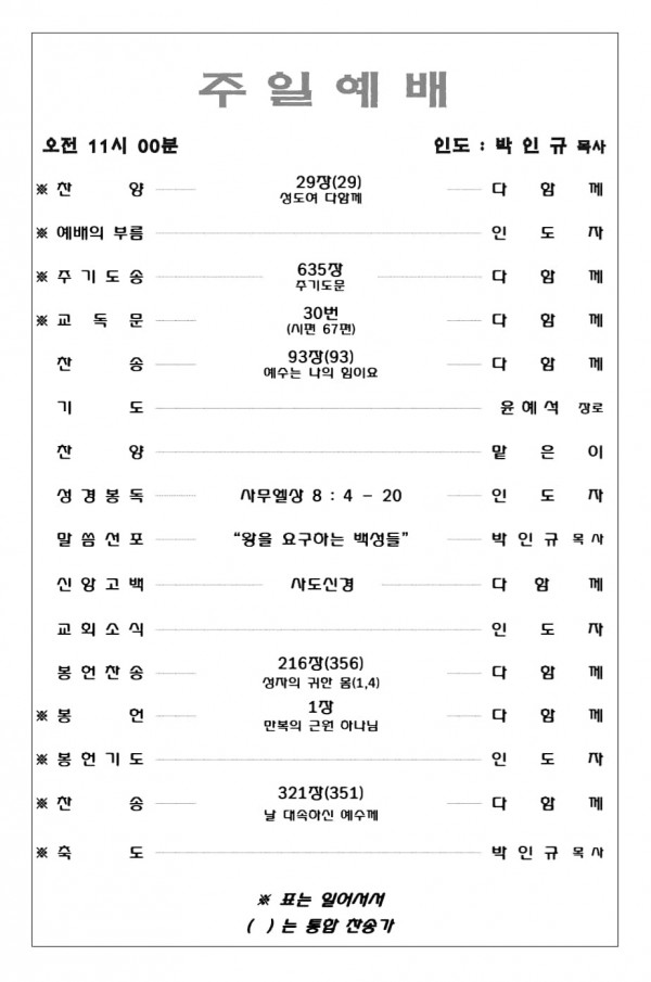 2026. 3. 15 주일예배 영상 및 주보