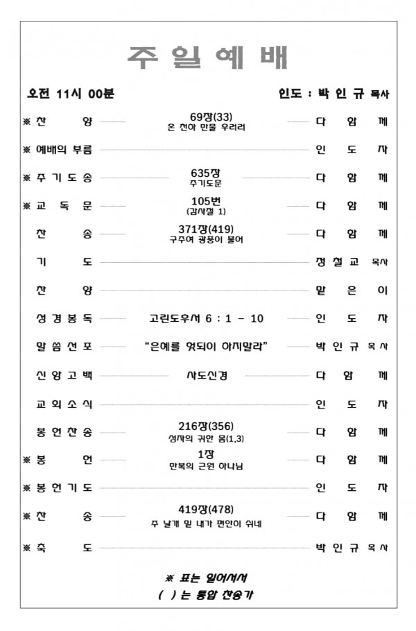 2026. 3. 15 주일예배 영상 및 주보