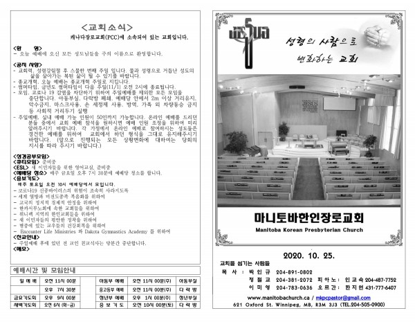 마니토바한인장로교회 웹사이트에 방문해 주셔서 감사합니다.