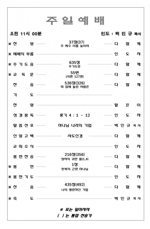 2026. 3. 15 주일예배 영상 및 주보