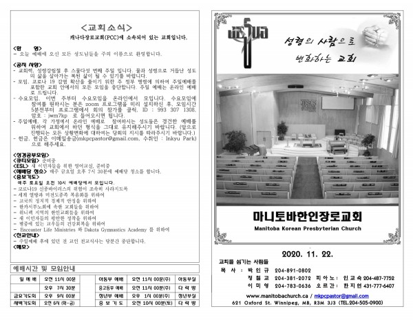 마니토바한인장로교회 웹사이트에 방문해 주셔서 감사합니다.
