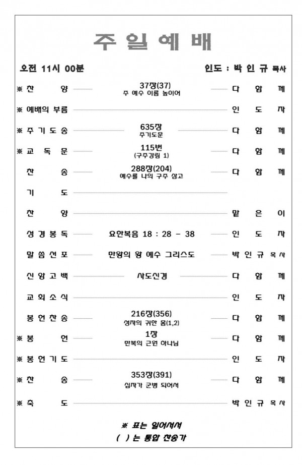 2020. 11. 29. 예배영상 및 주보