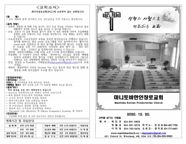마니토바한인장로교회 웹사이트에 방문해 주셔서 감사합니다.