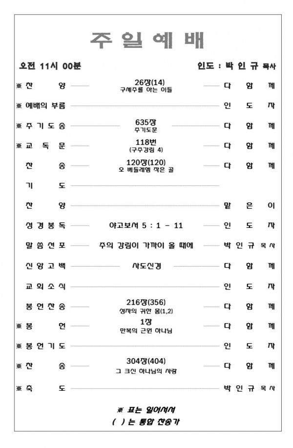 2026. 3. 15 주일예배 영상 및 주보