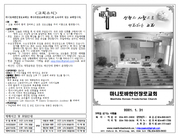 마니토바한인장로교회 웹사이트에 방문해 주셔서 감사합니다.