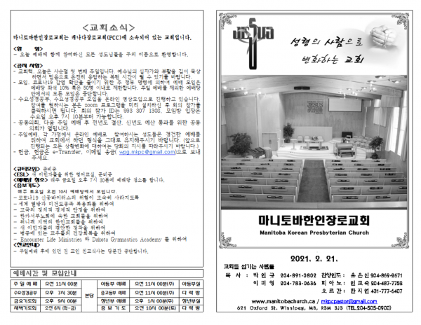 2021. 2. 21 예배영상 및 주보