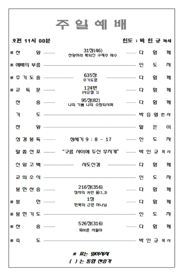 2026. 3. 15 주일예배 영상 및 주보