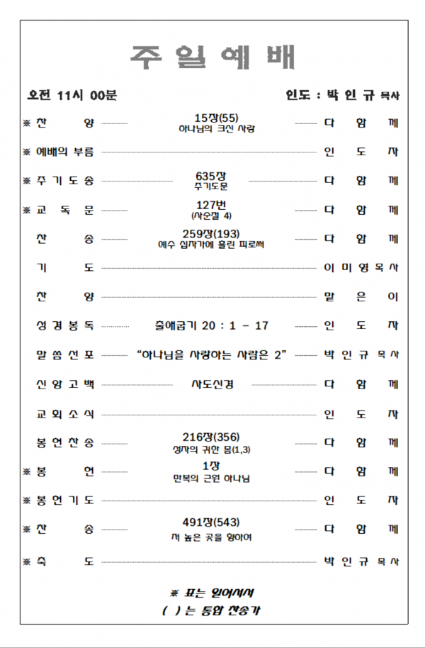 2026. 3. 15 주일예배 영상 및 주보