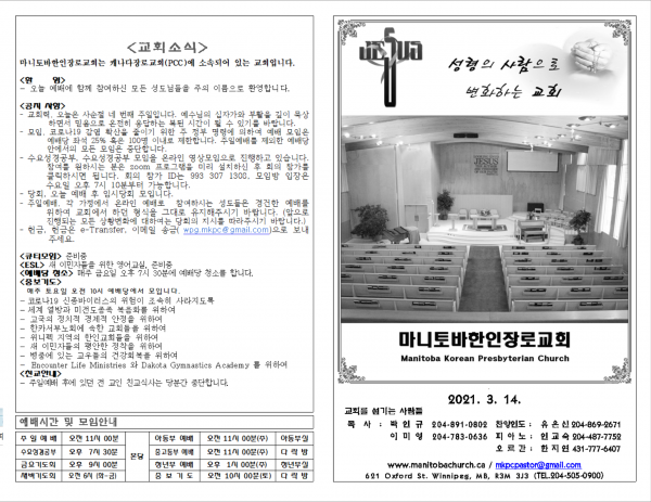 2021. 3. 14. 예배영상 및 주보