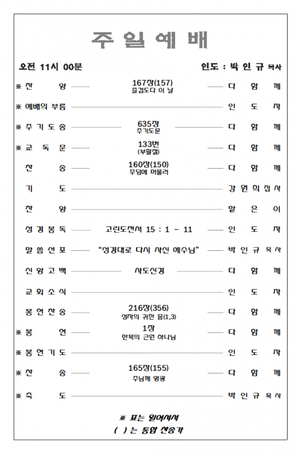 2026. 3. 15 주일예배 영상 및 주보