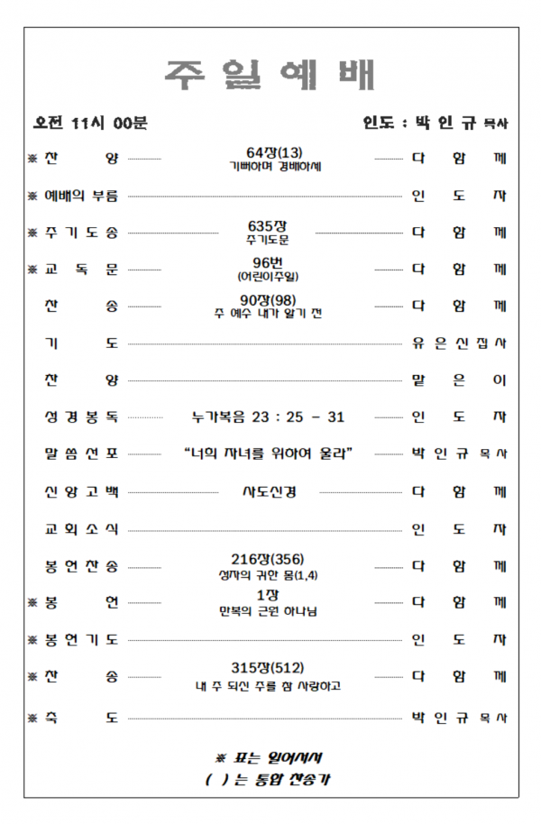 2026. 3. 15 주일예배 영상 및 주보