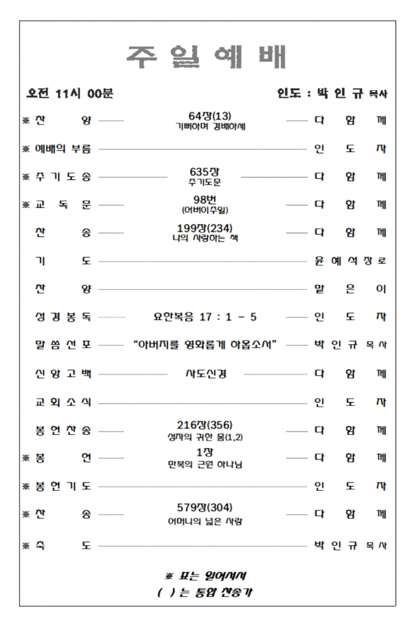 2021. 5. 9. 예배영상 및 주보
