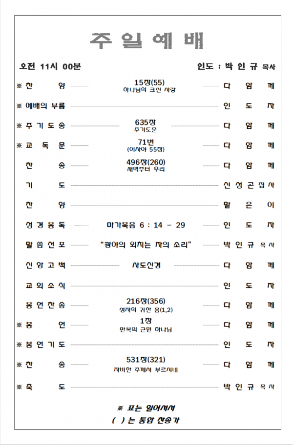 2026. 3. 15 주일예배 영상 및 주보