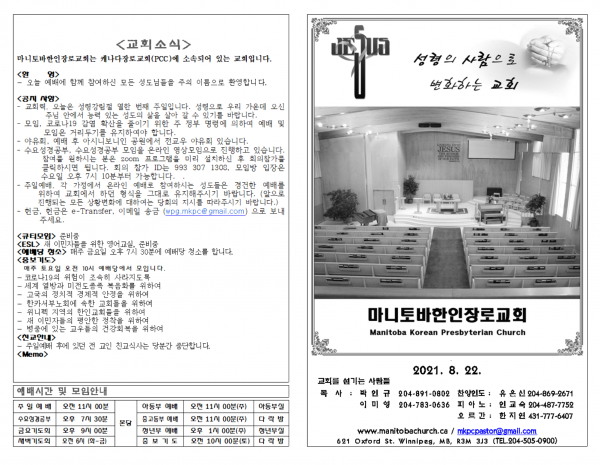 마니토바한인장로교회 웹사이트에 방문해 주셔서 감사합니다.