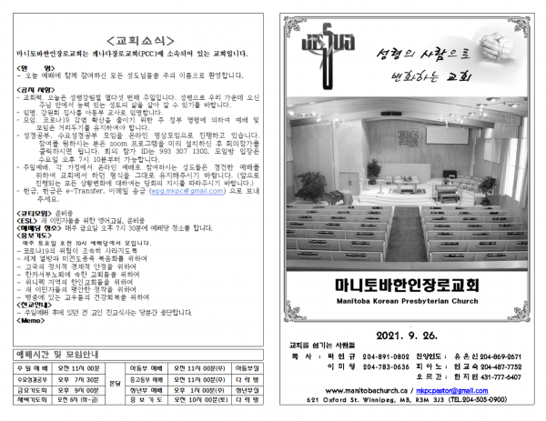 마니토바한인장로교회 웹사이트에 방문해 주셔서 감사합니다.