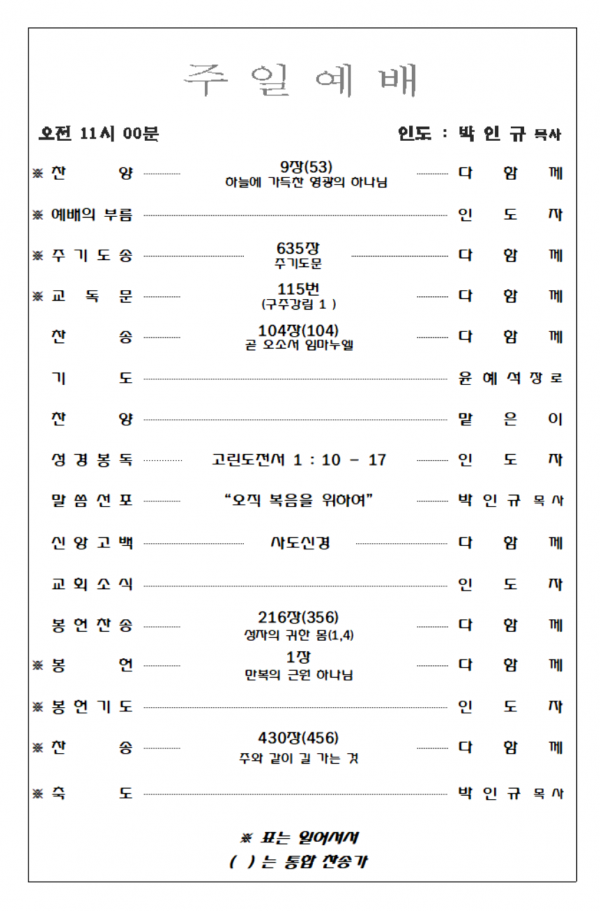 2026. 3. 15 주일예배 영상 및 주보