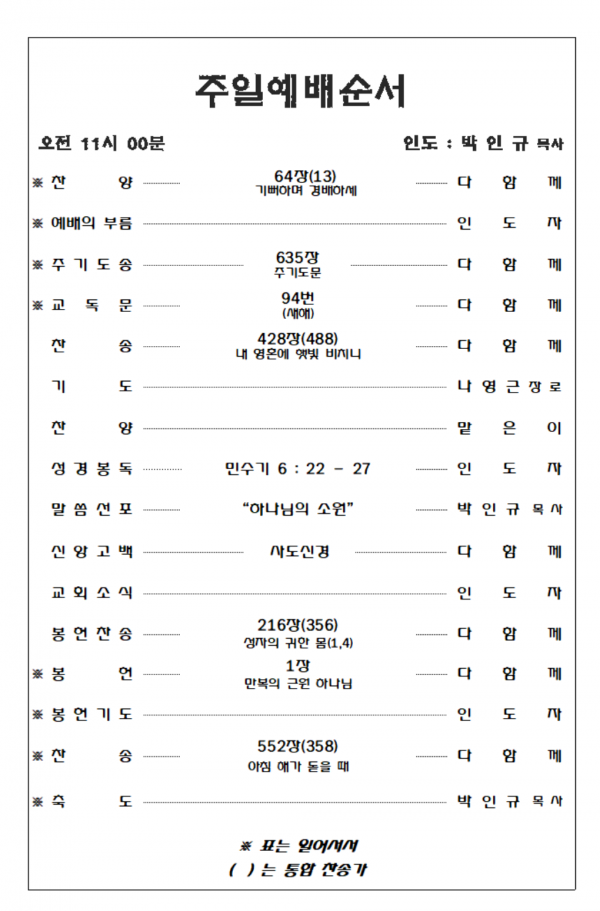 2026. 3. 15 주일예배 영상 및 주보
